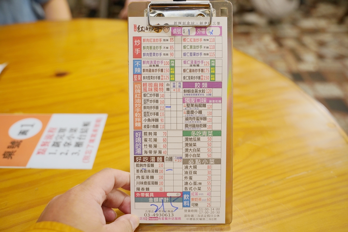 十三張紅油抄手的餐點種類非常豐富,想吃什麼直接畫在點菜單上就行了,價格幾乎都在百元以上了