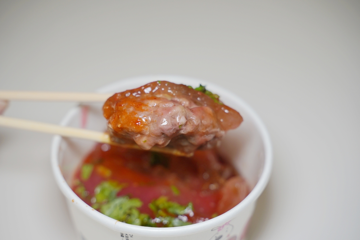 肉圓的內餡真的很大塊,吃得到很札實的肉塊和竹筍,醬汁偏甜一些些,肉圓皮非常的Q彈,好吃大推唷!