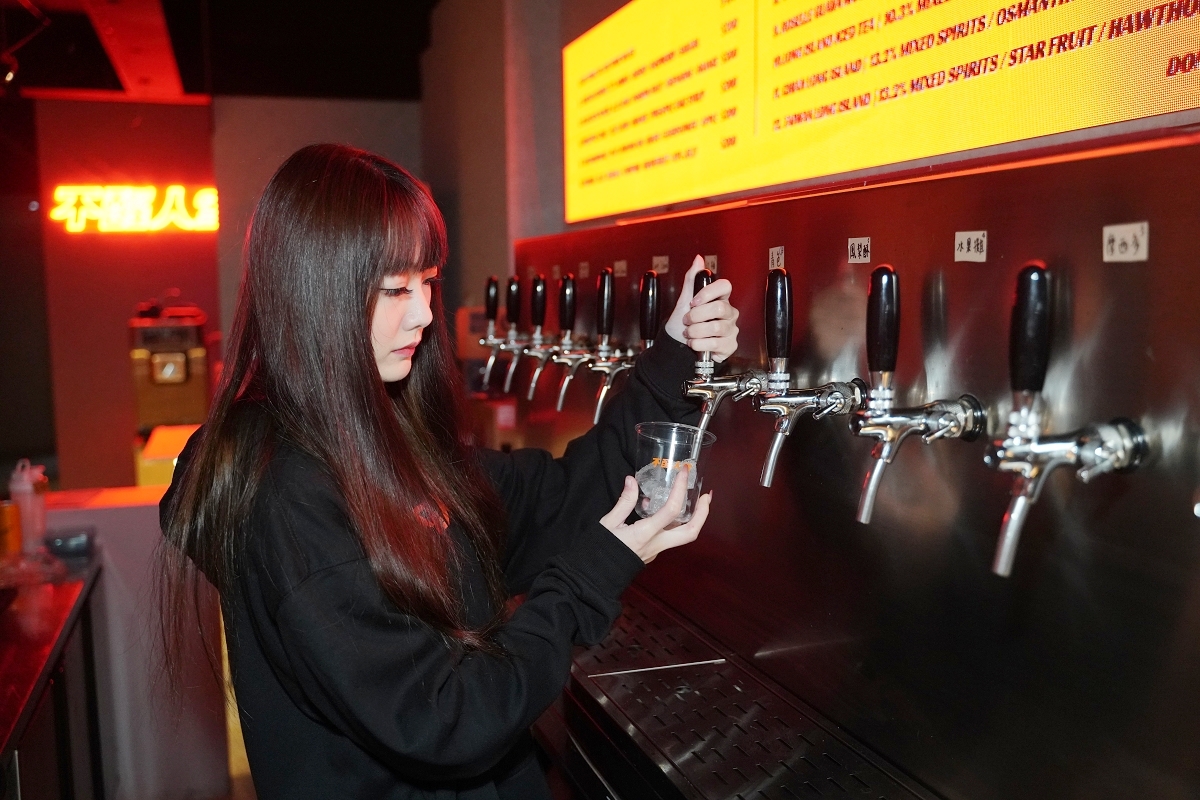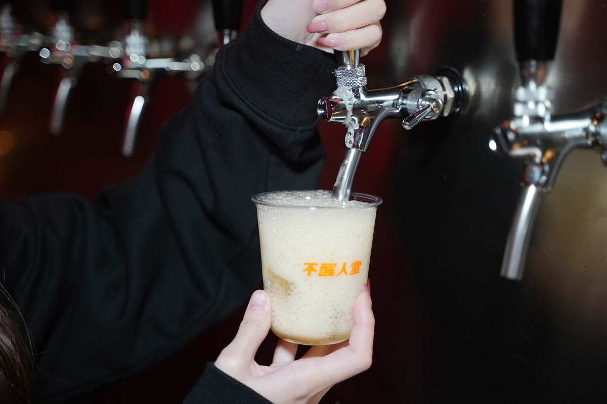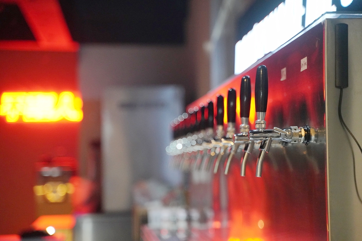 吧台點餐區一整排的拉霸啤酒機超吸晴