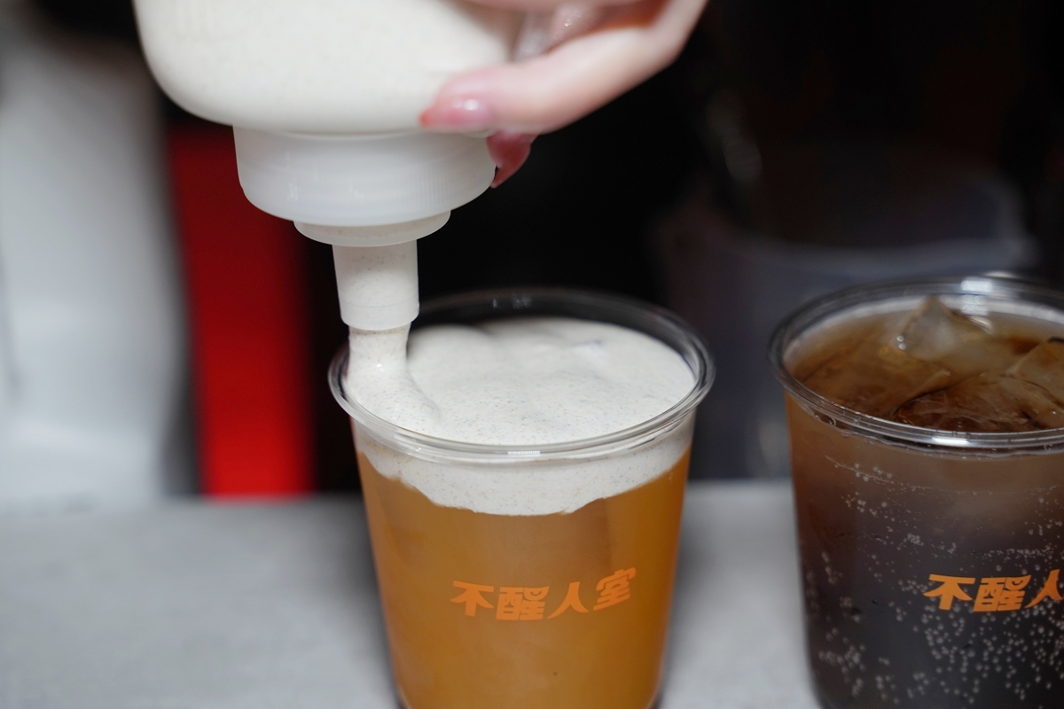 不喝酒的可以試試他們家的綠豆椪啤啤,用綠豆糕做成的奶蓋,喝起來會有啤酒的泡沫口感,綠豆椪啤啤是由無酒精啤酒、芭樂和芒果組成,喝起來的味道特別香甜順口