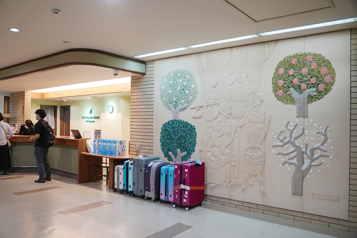 一樓接待大廳可以看到代表深川在地特色的裝飾,深川市是一個盛產稻田和農業繁榮的地區,一年四季都有不同的風景