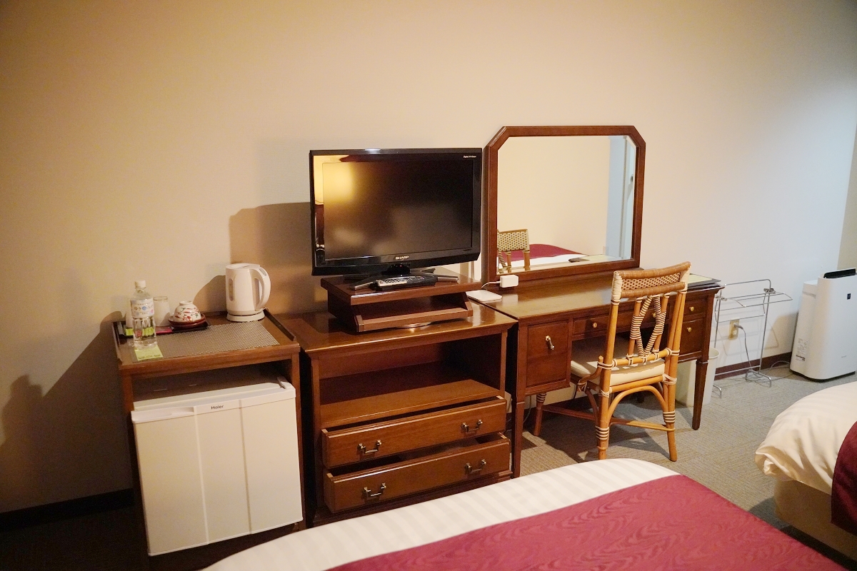床舖對面有MINI吧、冰箱、電視和化妝檯