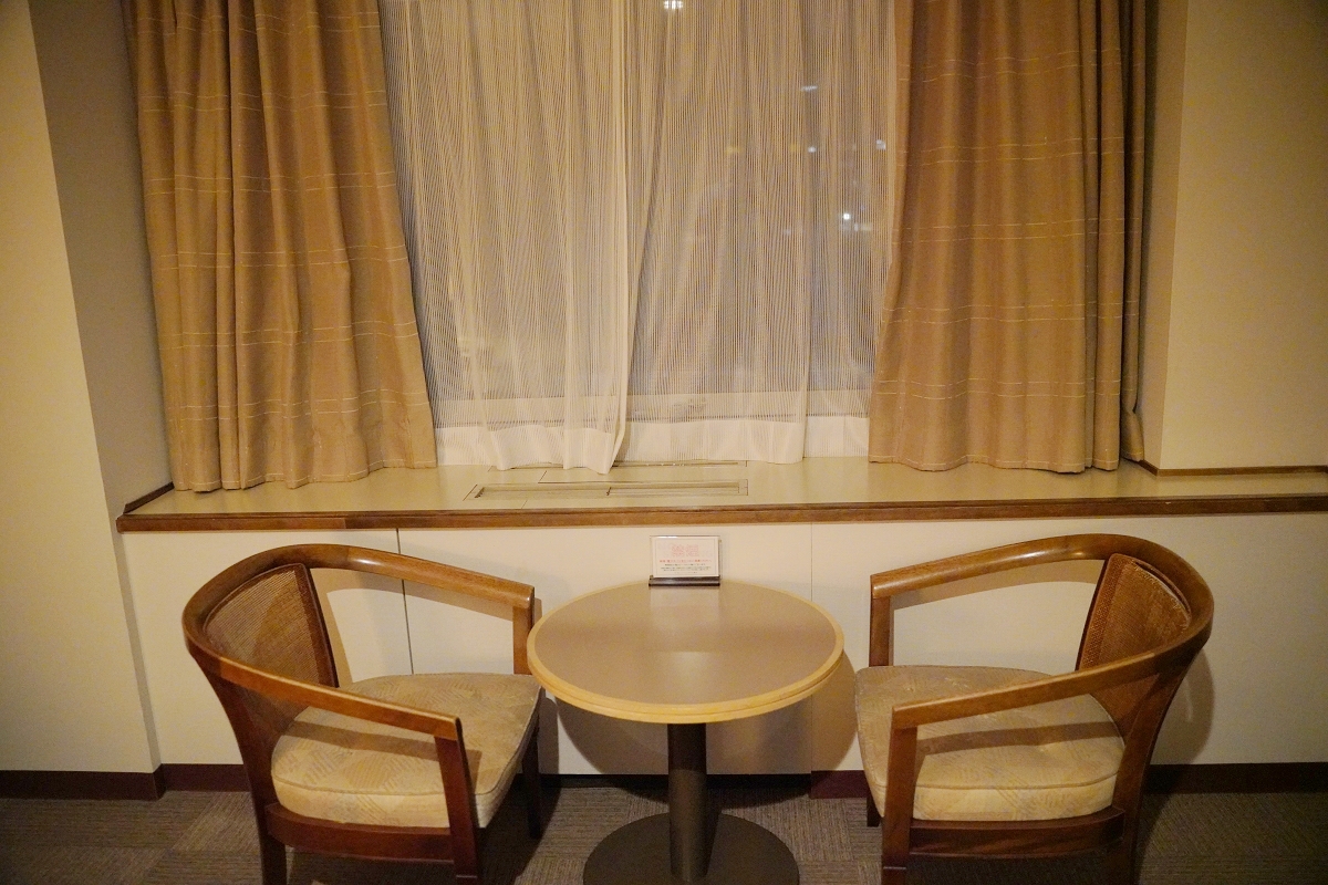 窗邊有二張單人沙發椅可以坐著泡茶休息