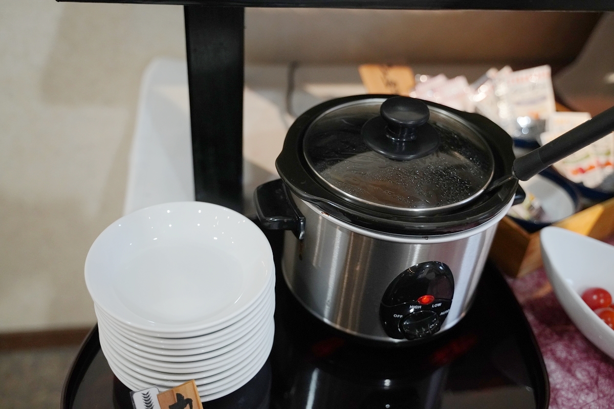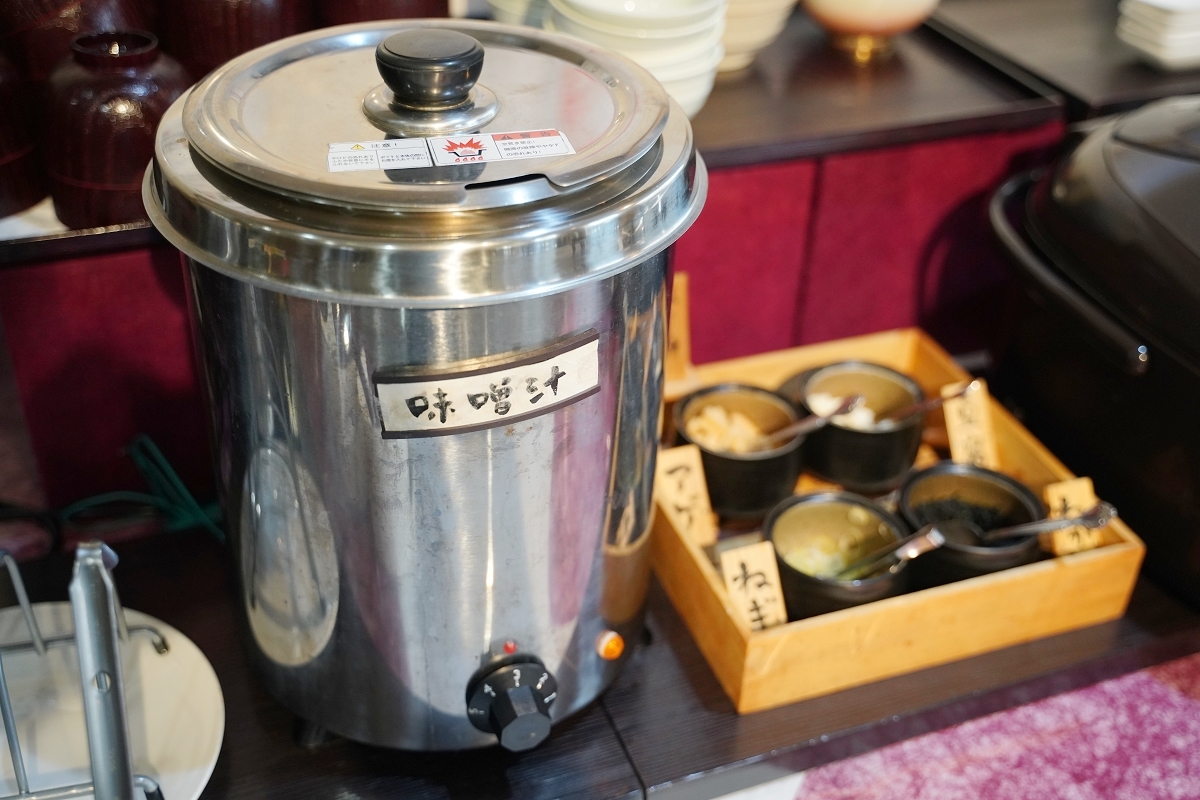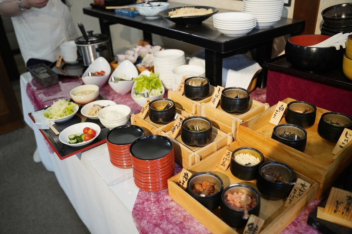 ラ・カンパーニュホテル深川的早餐以日式早餐為主,吃得到深川產白米飯、味噌湯、沙拉、日式小菜,種類選擇不算多,但絕對可以讓人吃得飽飽的