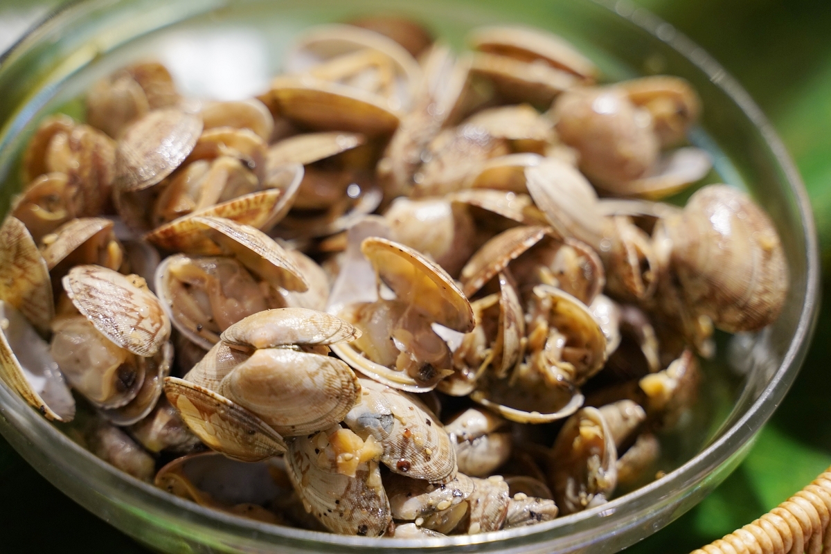 冷盤海鮮區吃得到甜白蝦、涼拌海瓜子、辣味莎莎花枝沙拉以及黑殼淡菜