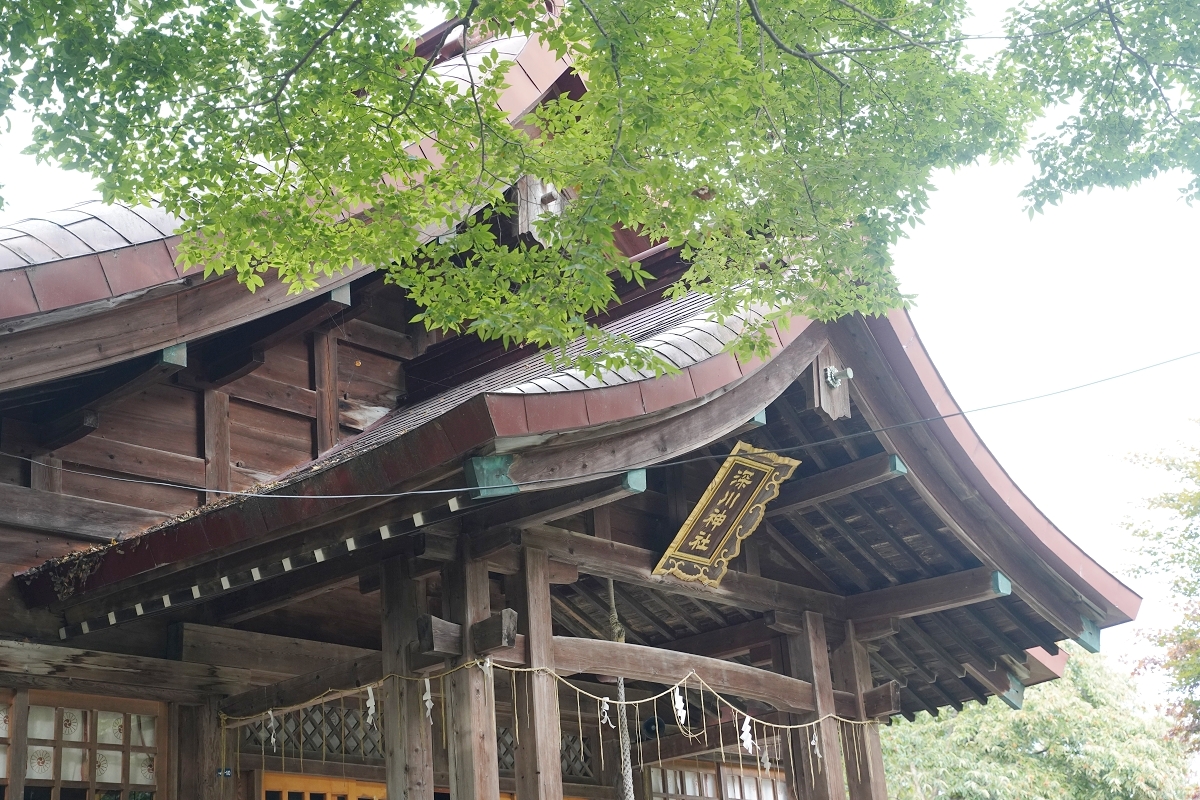 深川神社拜殿,社殿樣式為大社造,大社造是最為古老的日本神社建築風格,得名於出雲大社本殿