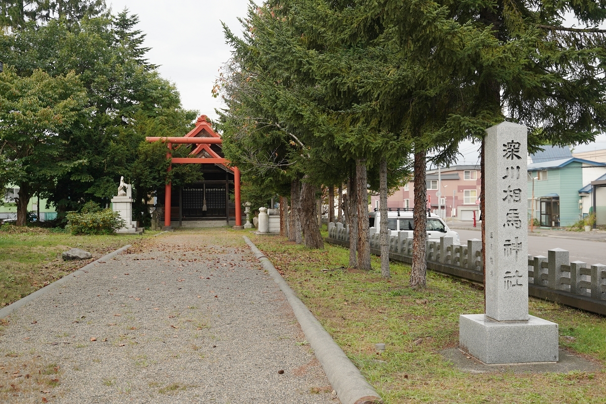 由於許多定居深川市的居民很多都來自長野縣相馬村,於是就把家鄉諏訪大社的神靈邀請而建立的,「相馬」的名字源自於該地區「相馬村」