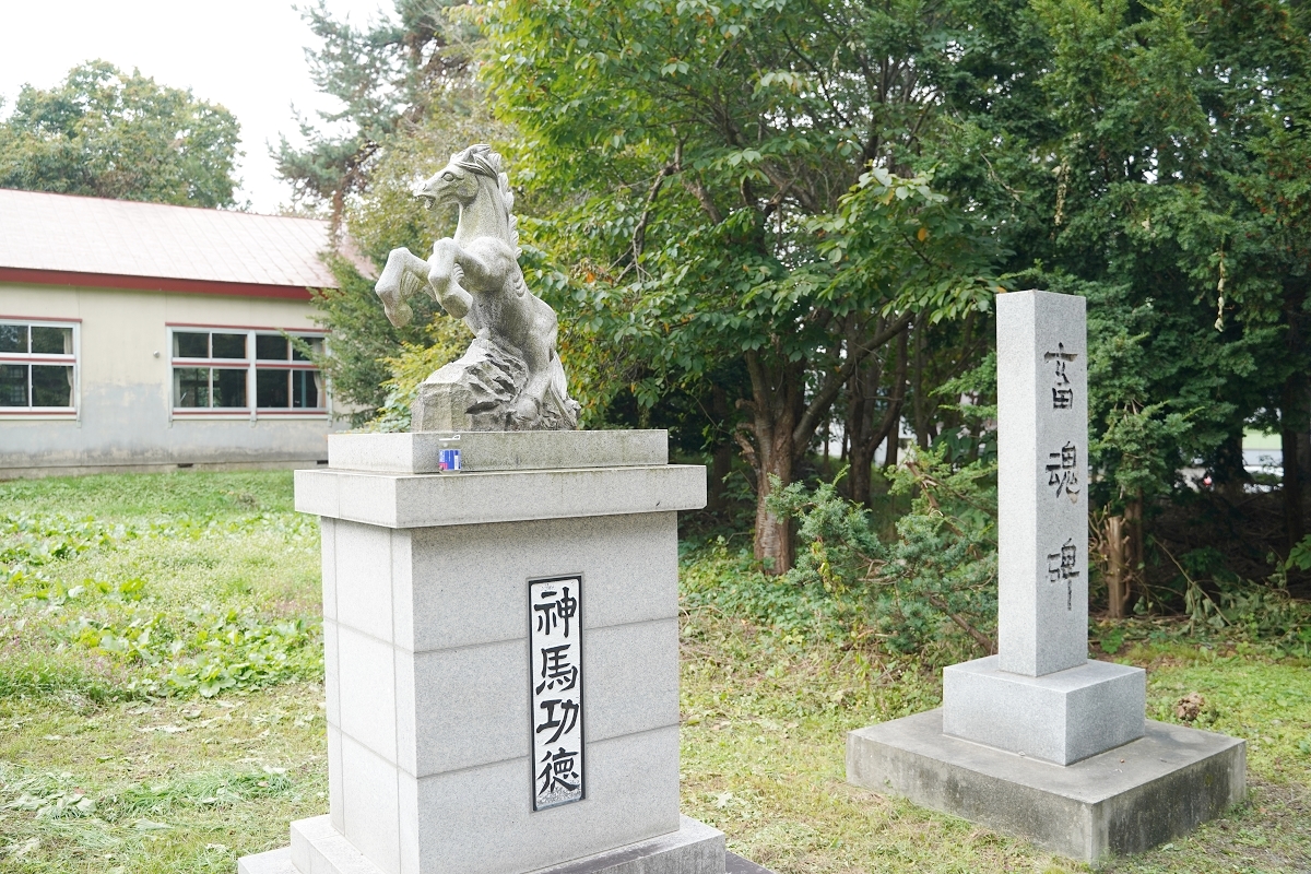到北海道深川市旅行,一定要去的景點之一絕對就是「深川神社」,北海道深川神社創建於1894年,至今超過百年歷史,明治27年(1894年)初代神主在現址建造了小社,明治32年(1910年)增建了本殿和拜殿,大正9年升格村社、昭和6年升格鄉社、昭和16年升格縣社,深川神社御祭神有天照皇大神、豊宇気姬神、神武天皇、大國主之神以及大國魂之神,深川神社是一個可以慢慢參觀的日本在地神社,平日幾乎不會有遊客,從入口處的鳥居可以漫步走到神社,感覺整個區域都被森林包圍住一樣相當綠意盎然,穿過鳥居可以看到一座相當特別的手水舍,手水盤用的是北海道最古老的輝岩,表面呈綠色蛇紋,沒有打磨摸起來卻非常光滑,參拜完深川神社後,別忘了一旁還有同樣擁有百年歷史的深川相馬神社,它是一座以駿馬為主題的神社,在這裡可以看到神馬功德碑、畜魂碑、神馬天翔碑以及馬頭觀世音菩薩唷!!