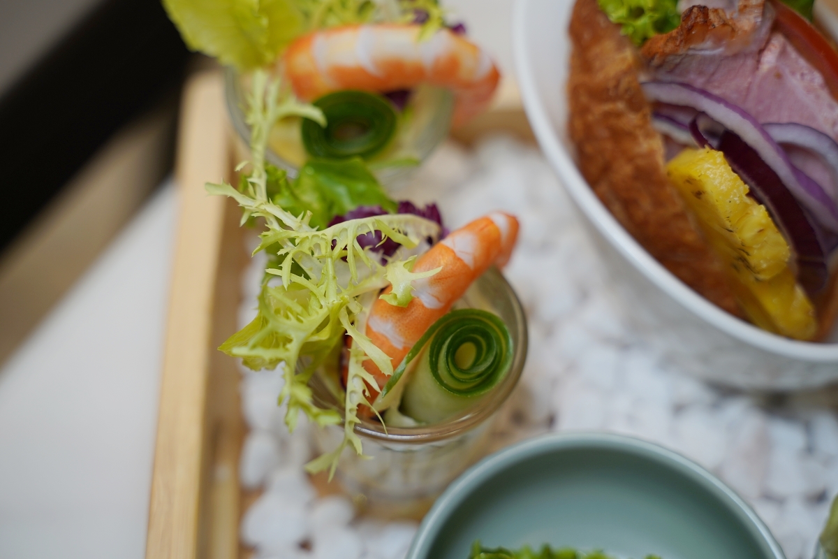 鮮蝦大隻口感軟脆,搭配各種生菜相當清爽