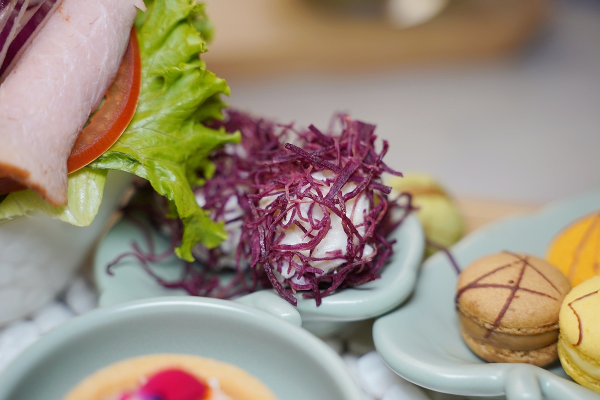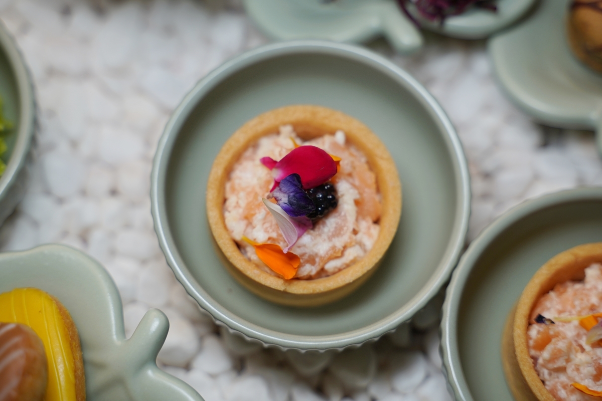 大口咬下可以先感受到塔皮的酥脆,內餡有滿滿的煙燻鮭魚慕斯,真的是一道非常精緻可口的鹹點心
