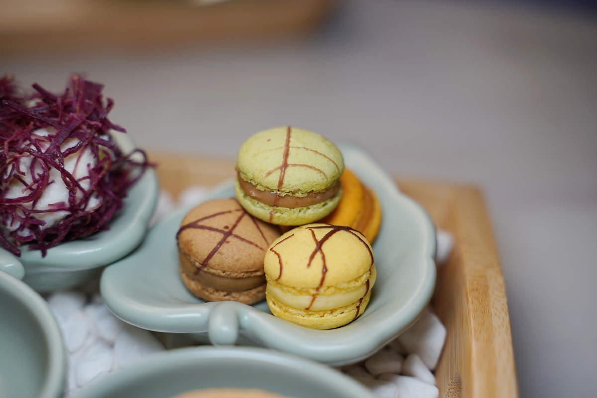 這道袖珍法式馬卡龍真的好好吃,甜度適中,不會像傳統馬卡龍太甜,外層很酥,搭配各種口味的內餡,真心大推