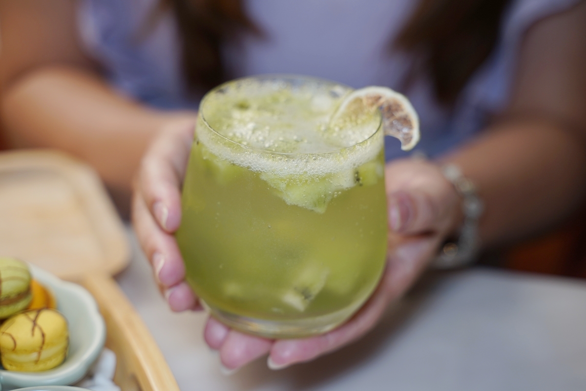 奇異果氣泡蘇打有氣泡的微嗆口感以及奇異果的果肉可以享用,搭配各種鹹甜點都非常適合唷!!
