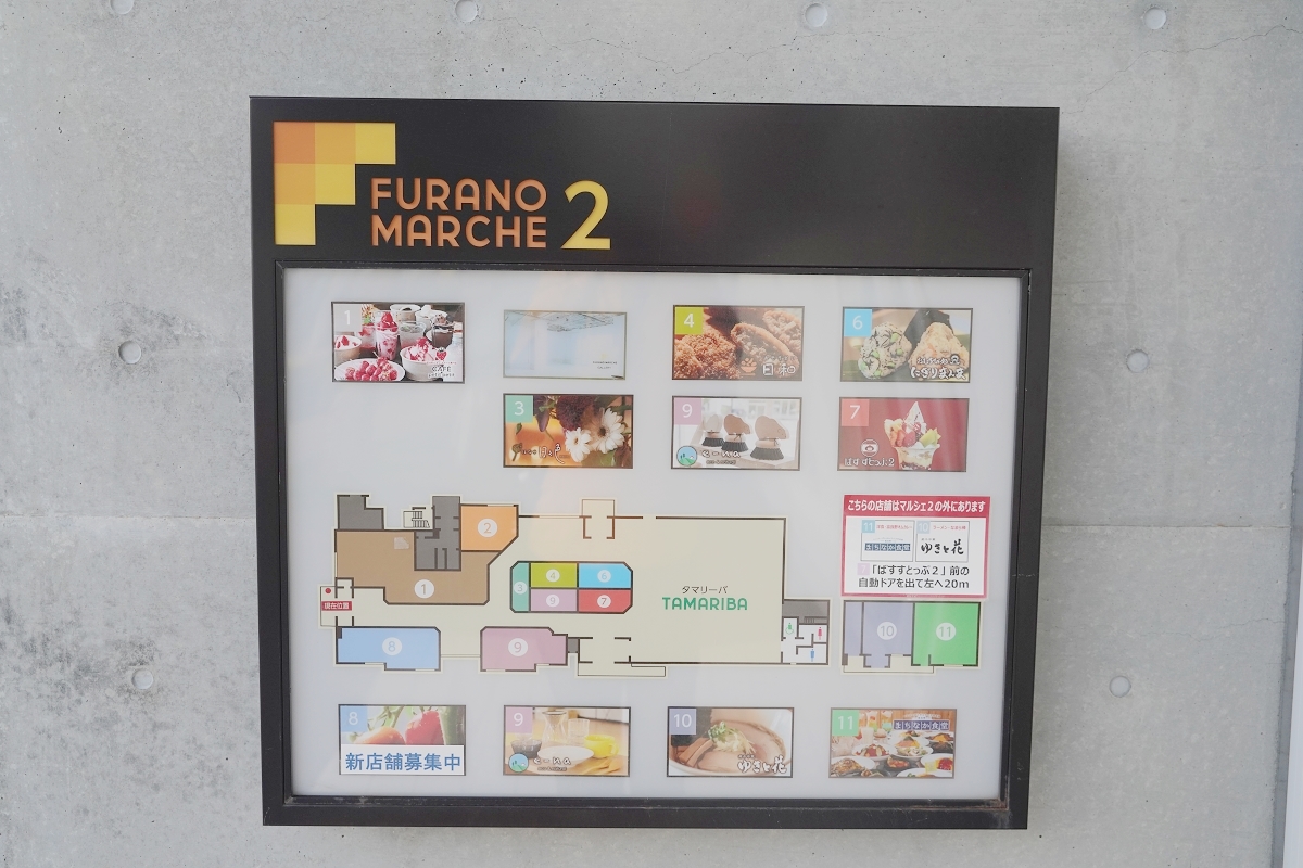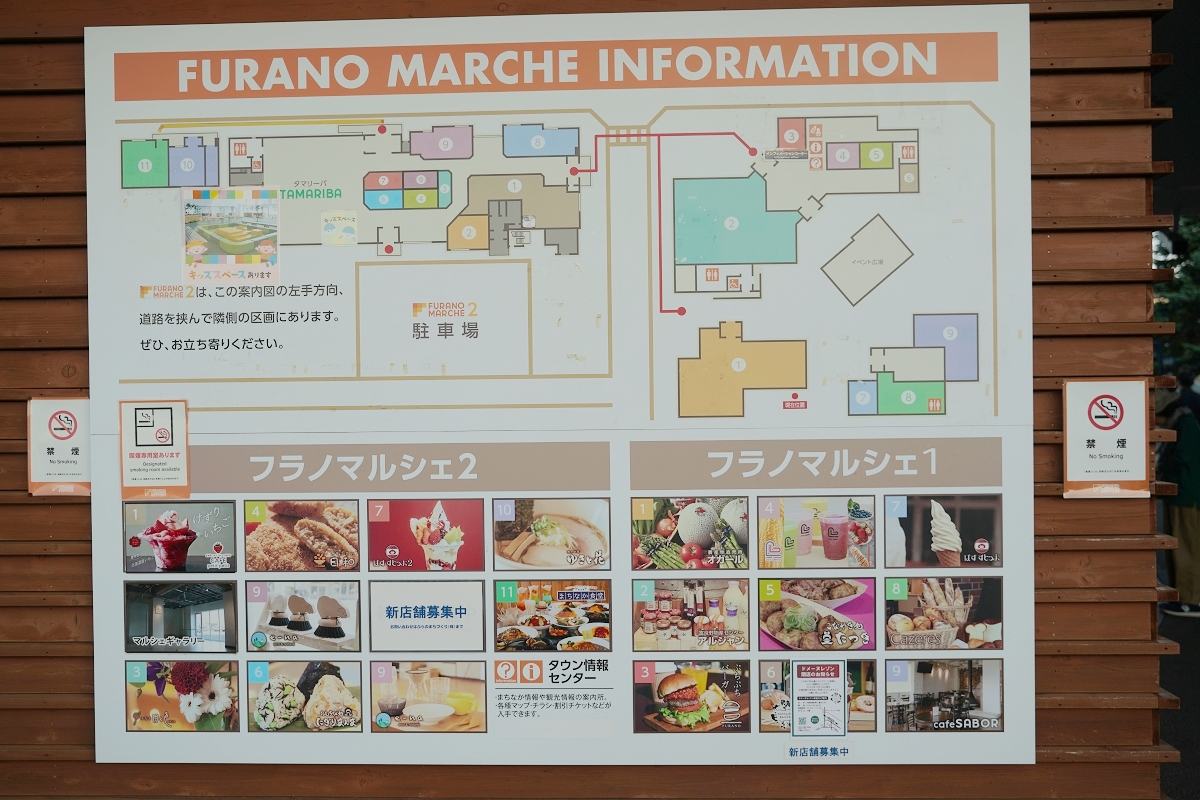 Furano Marche 開幕於2010年春天開幕,這裡曾是大型醫院,因搬遷而成為空地,Furano Marche 富良野農夫市集分為1號館和2號館,「富良野市集1號館」集合當地美味商品與伴手禮