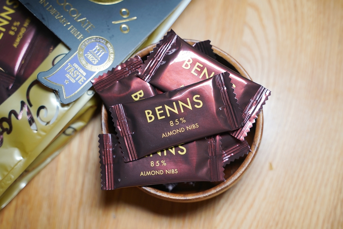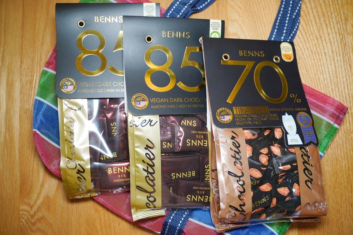 之前就有只過85%的黑巧克力,但說實話會比較偏苦一些,但貝納絲純素杏仁碎黑巧克力真的讓我們重新愛上黑巧克力,那風味和口感真的很難讓人不愛上