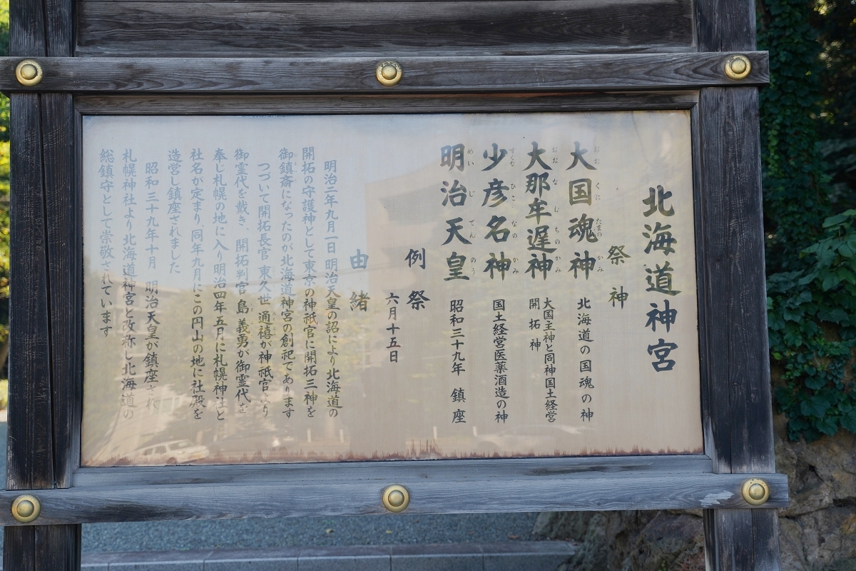各位朋友如果是第一次到北海道想要安排行程景點的話,「北海道神宮」是絕對要安排去走走參拜一下,北海道神宮起源於明治二年(西元1869年),至今已有150多年歷史,1869年當時被稱為「蝦夷地」的北海道被正式更名為「北海道」,同年9月1日,日本明治天皇下詔在東京舉行祀奉守護北海道開拓事業的儀式,祀奉的神明為大國魂神、大那牟遲神與及少彥名神,合稱「開拓三神」作為北海道發展和擴張的守護神,其後,當時的開拓使長官 東久世通禧及開拓判官 島義勇將神明的化身(神明棲息的物品,例如鏡子和刀劍)從東京被移至函館,之後又被移至札幌