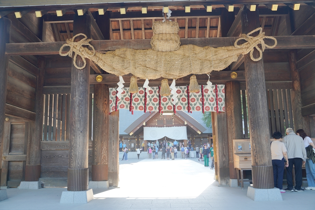 北海道神宮的神門,在神門上可以看到「大注連繩」Osimenawa