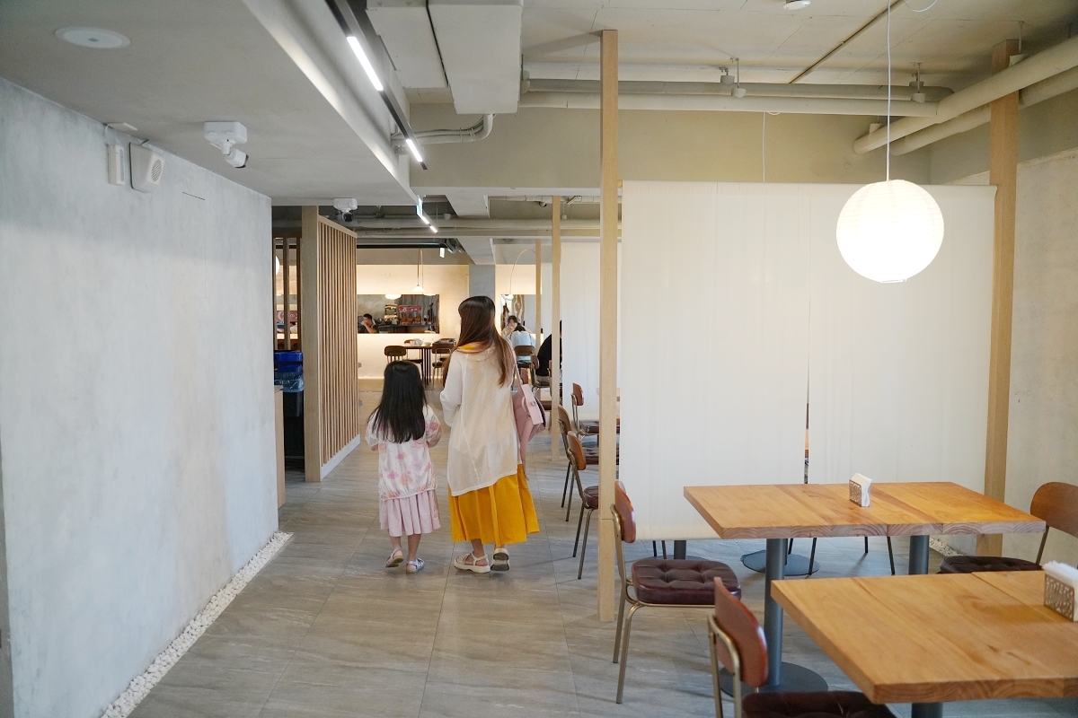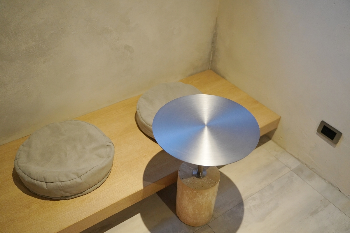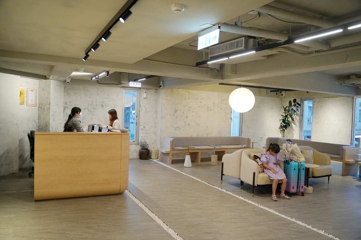宜蘭東旅的接待大廳在2樓,搭電梯上來後就是超寬敞的大廳,清水模白灰設計搭配上日式風桌椅,櫃台也是木質視覺效果超好