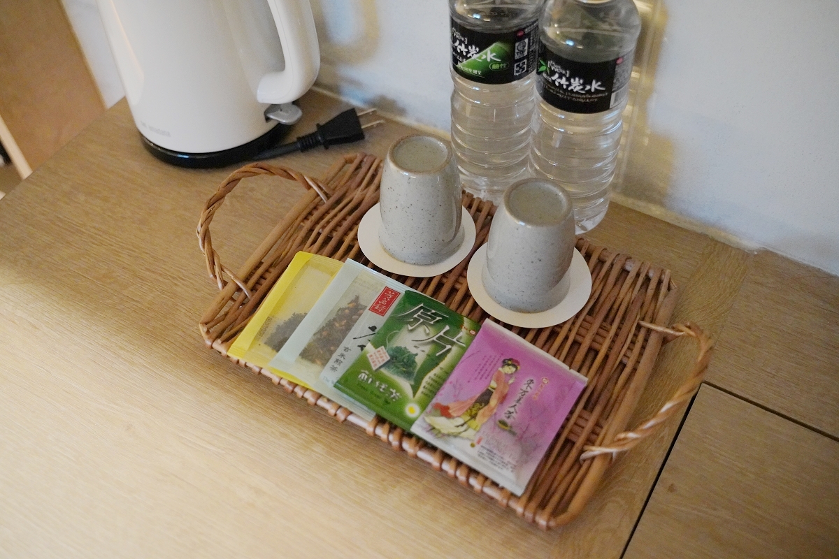 MINI吧備有茶包與瓶水,如果水不夠的話,每個樓層都備有飲水機可以裝水
