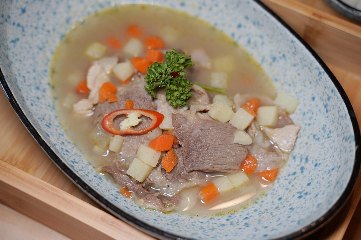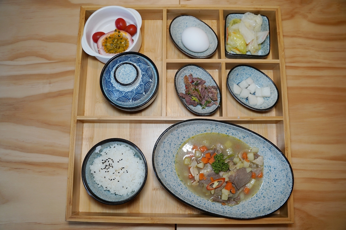 宜蘭東旅的早餐是套餐式的,前一天在櫃檯辦入住的時候就會詢問我們早餐的種類以及時段,當天的早餐會有咖哩豬以及胡麻雞排可以選擇