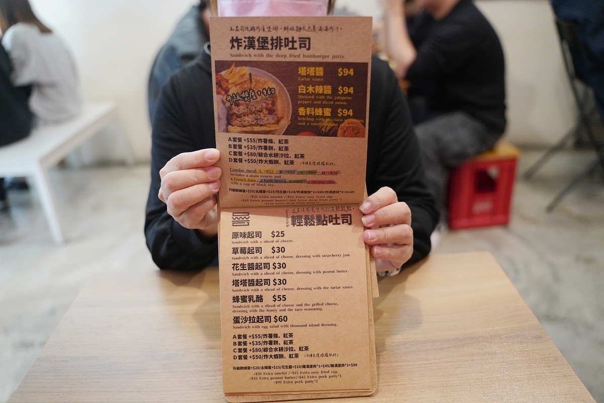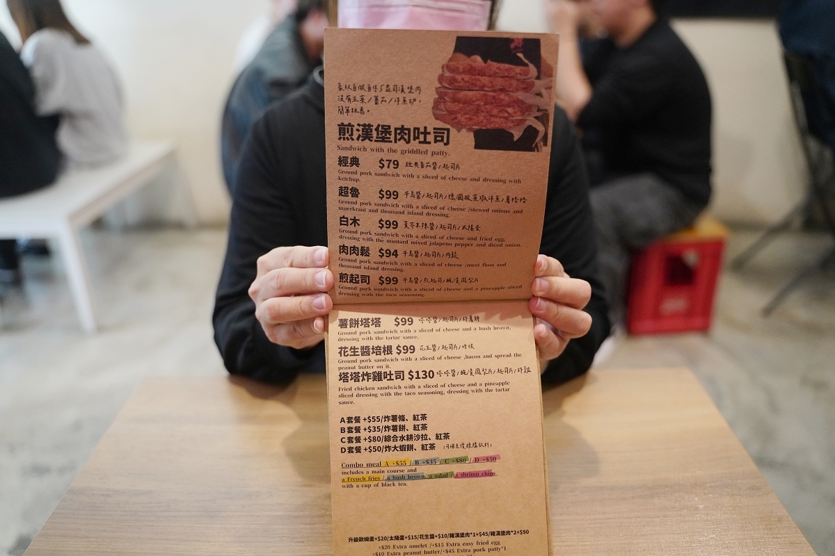 豪秋吐司的煎漢堡吐司種類很多選擇,價格從79元 起,還可以加價升級套餐