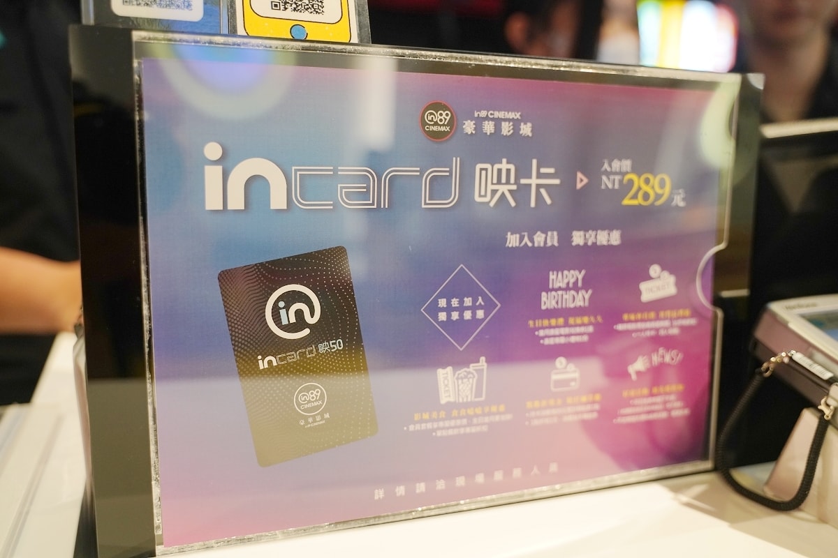 如果是第一次來看in89豪華影城的朋友,推薦可以辦一張「映卡incard」,入會費289元,加入就有四大好康: