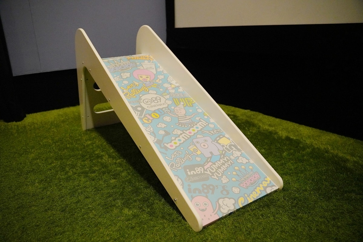 影廳前草皮區是兒童專屬遊戲區,有簡易版溜滑梯