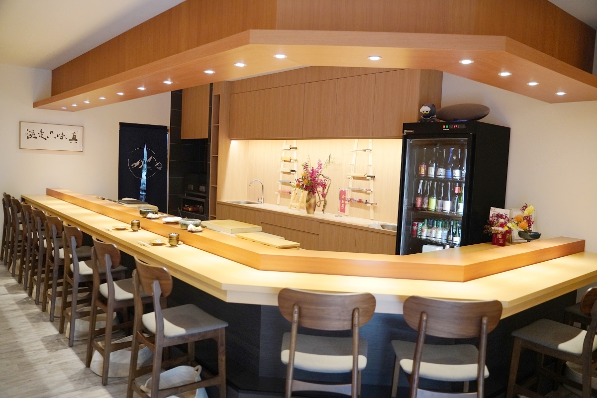 匠旬割烹的用餐環境相當有日式氛圍,採完全預約制,午餐12:30、晚餐18:30,用餐區都是吧台用餐區,每人都可以看到主廚料理餐點的過程