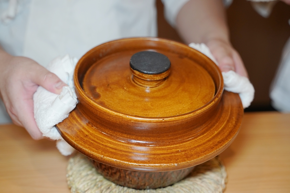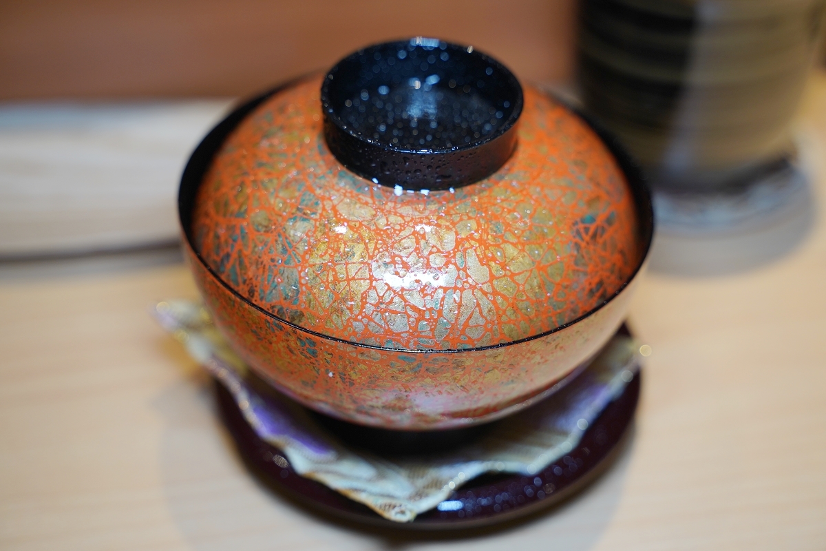 接下來送上的湯品,使用的日本金漆碗也太美了
