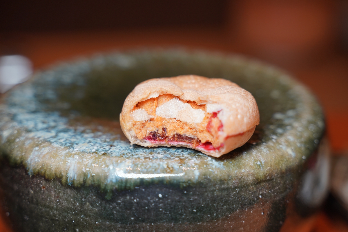 這裡吃到的最中餅也都是日本直送,而且很特別的是,最中餅上頭的圖案跟以往我們吃到的不太一樣,原來日本的最中餅會因為季節或特殊節日推出不同圖樣的最中餅,雖然口感一樣,但呈現出來就會讓吃的人感受到店家的用心,這道安康魚肝最中餅算是我們吃過口感最特別的,以往最中餅都是以甜點為主,但加上安康魚肝其實也滿好吃的,鹹鹹甜甜的味道加上奶油般的口感,讓我們一口接著一口