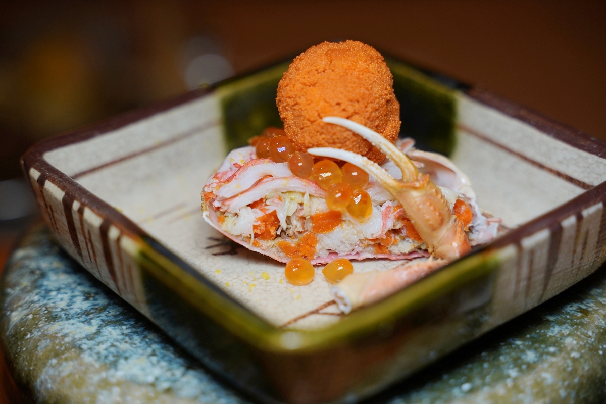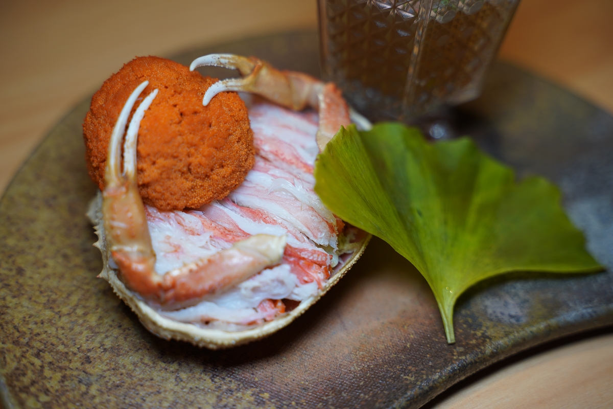 香箱蟹せいこがに,其實就是松葉蟹的母蟹,料理長把內子、外子、蟹膏和蟹肉整齊擺放於殼內,就像是寶石箱般華麗,於是就有了香箱蟹的名稱