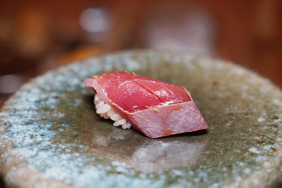 第二貫是鮪魚赤身手握,雖說是赤身,但口感和味道也完全不輸中腹,熟成鮪魚的滋味真的要來吃過才知道