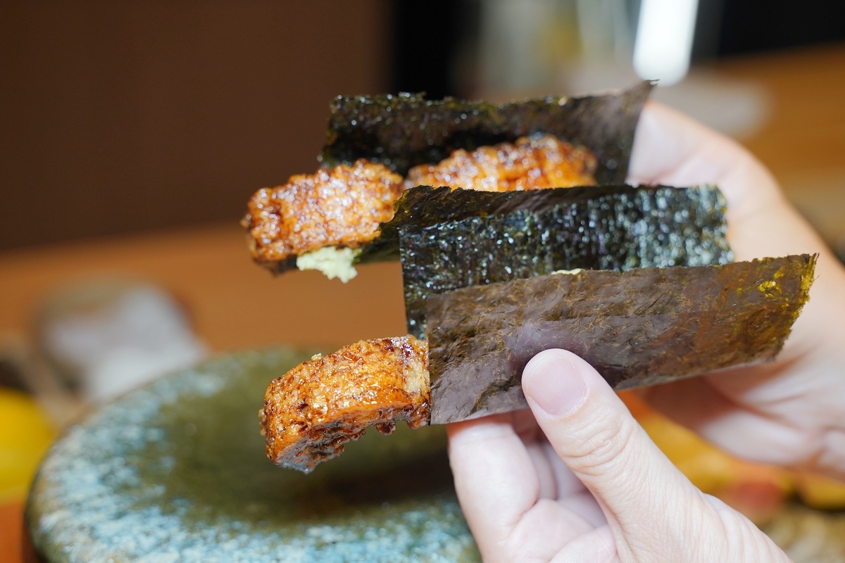 接下來是炸鰻魚,包上海苔直接享用,外酥內香的炸鰻魚真的很香