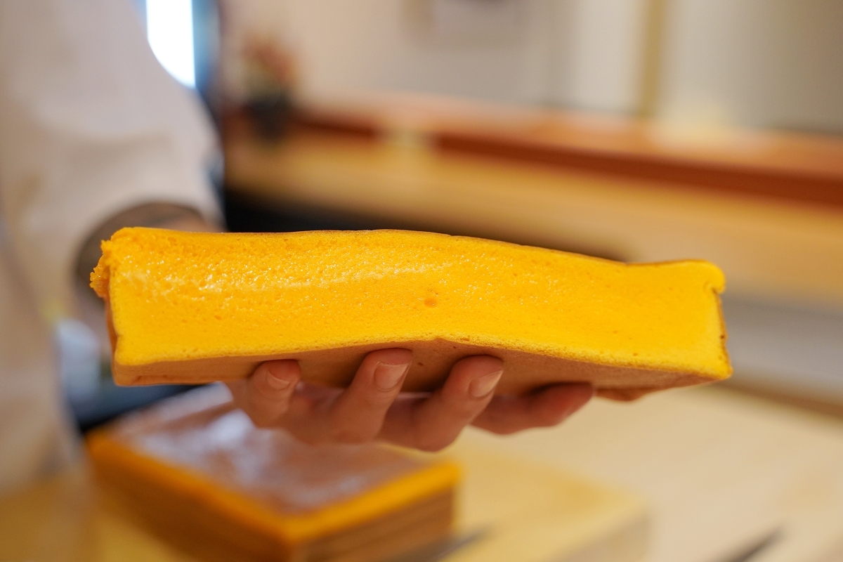 這道舒芙蕾玉子燒可以吃到非常溼潤、就跟蛋糕一樣的口感,軟嫩又滿口蛋香,讓人印象深刻