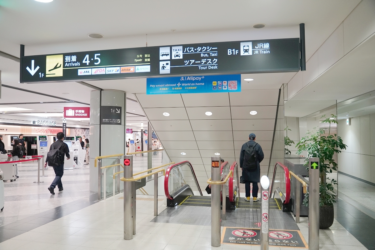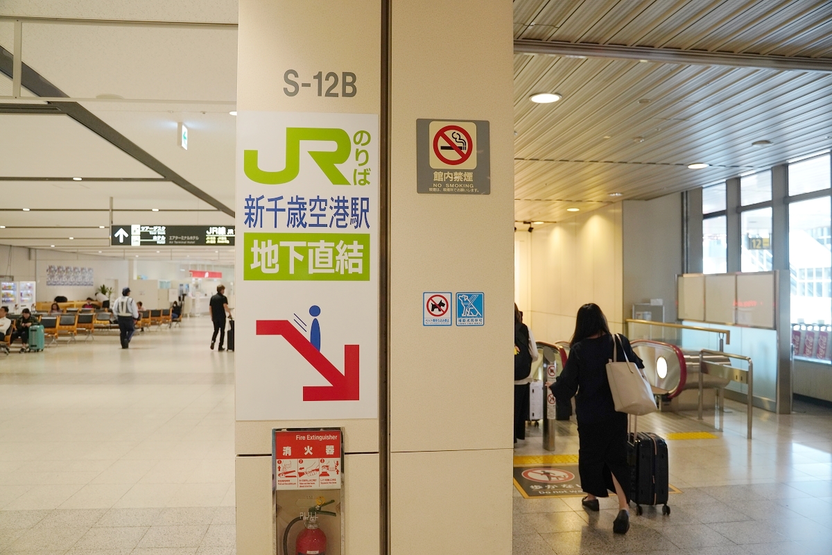 從台灣坐飛機到達新千歲機場後,沿著方向指標就可以往JR線前進