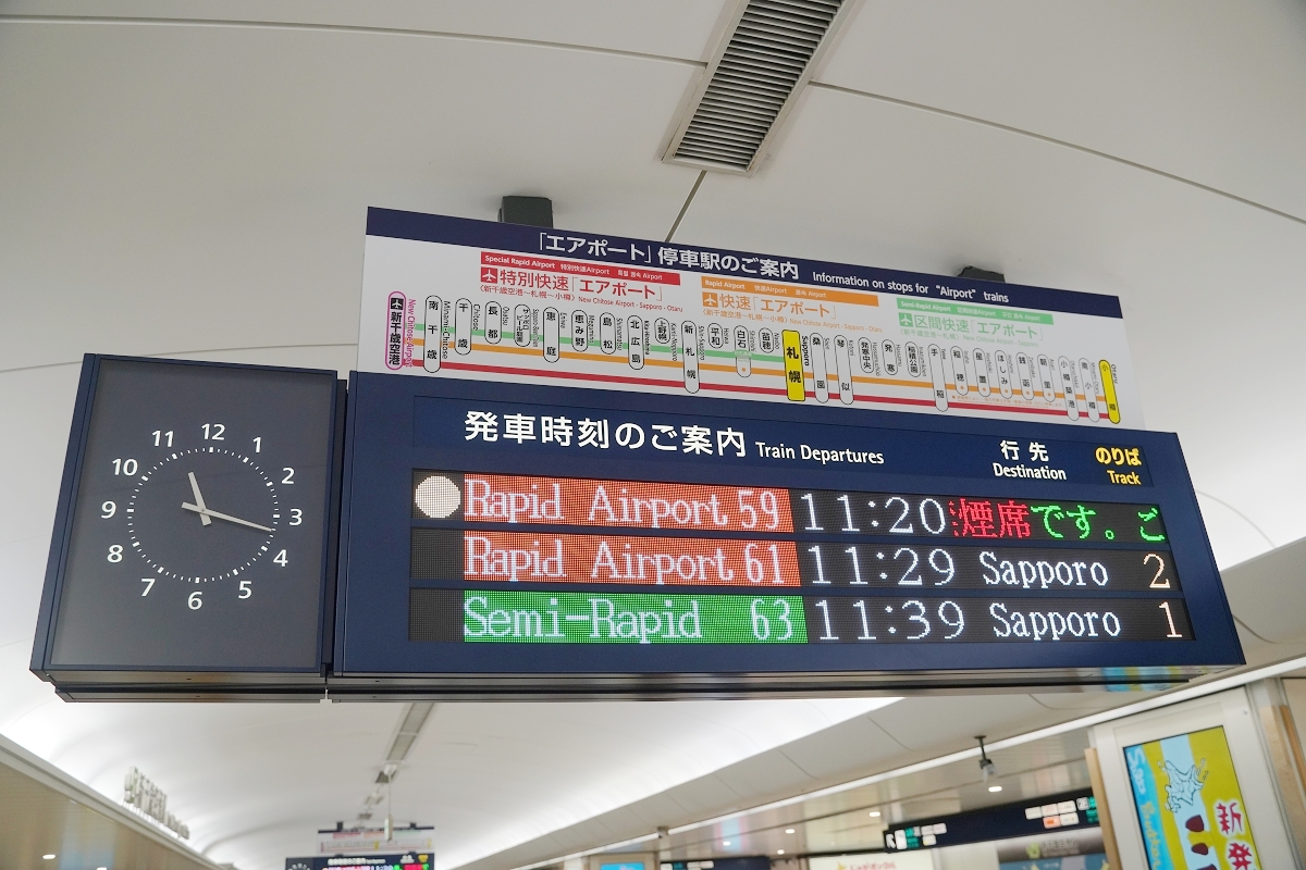 JR北海道エアポートAirport號有特別快速、快速、區間快速與普通車,車資都是一樣的,只差別停靠站的數量,特別快速36分、快速37分、區間快速43分,就算坐到最慢區間快速其實也差不到十分鐘,所以到了有車就可以直接上