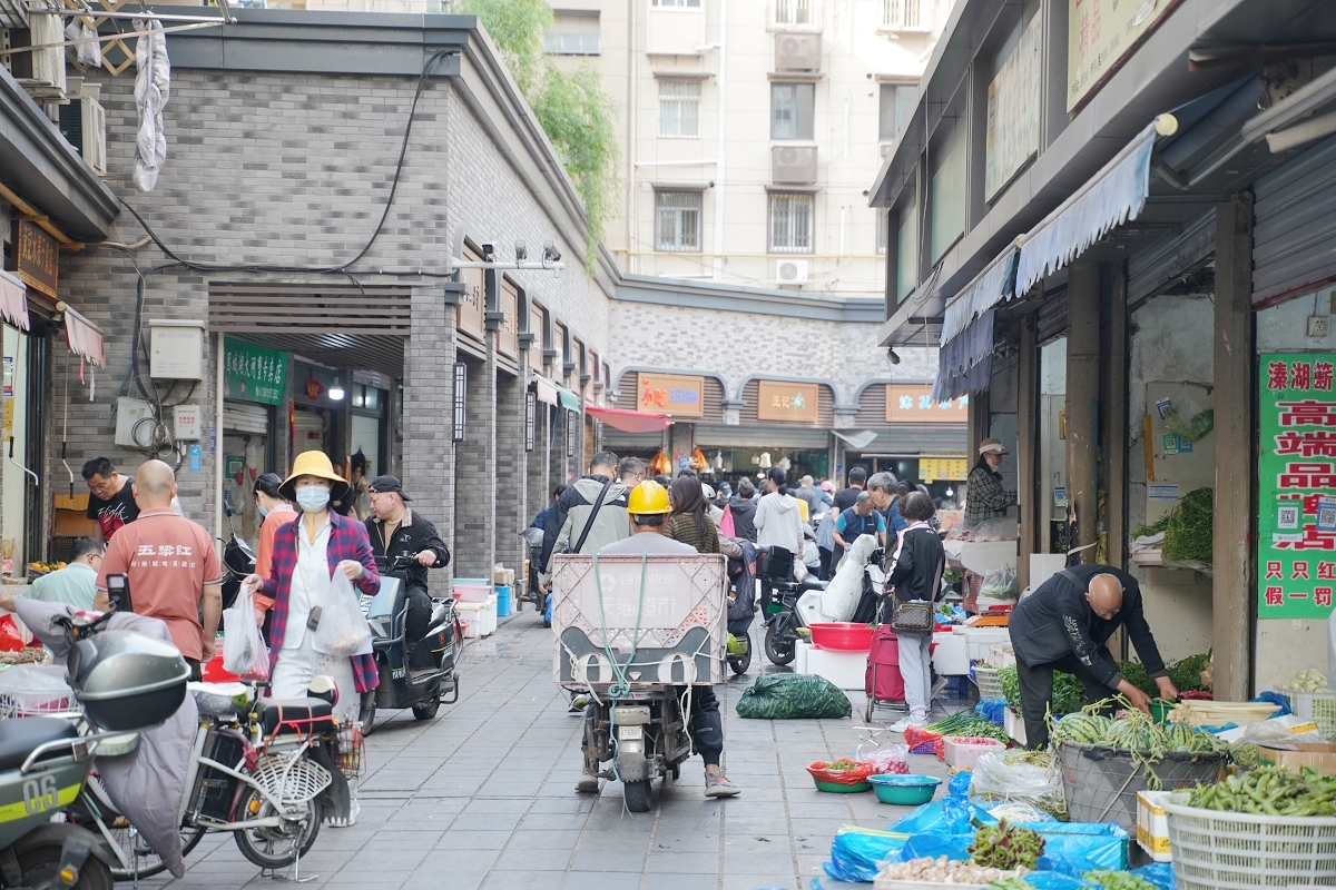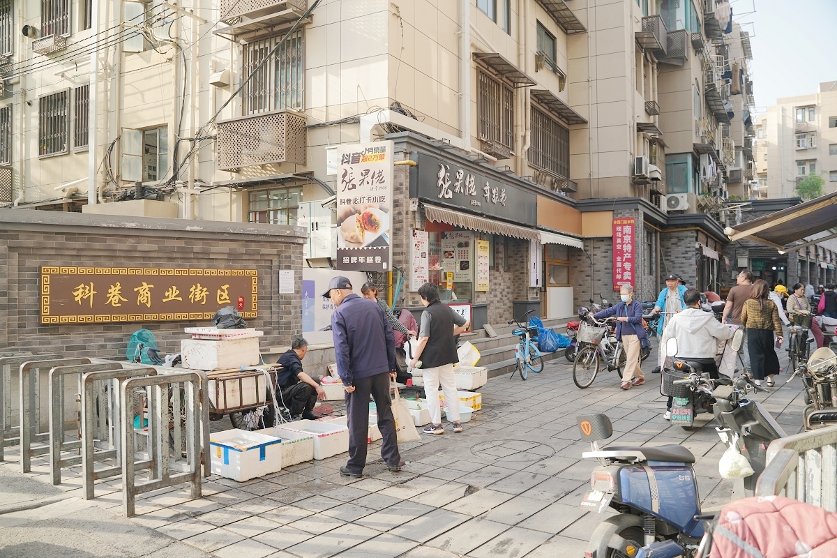 南京科巷商業街區的位置就在南京市秦淮區五老村街道的核心區域,當天我們特別一大早起床就想要來科巷逛逛,一大早來買菜的在地居民還真不少