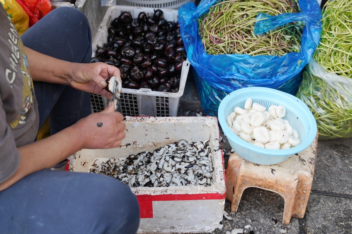 在菜市場裡到處都可以看到老闆們在工作的情形