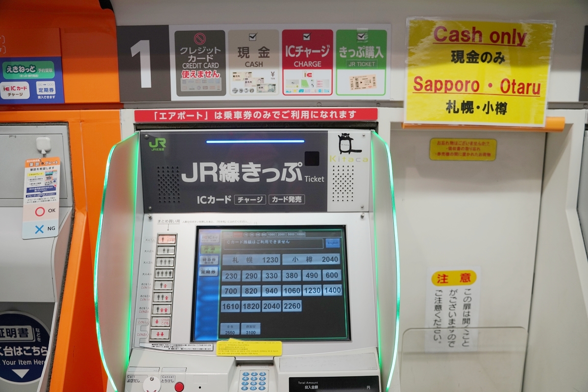 只要在北海道各JR車站的自動售票機都可以購買到這張 JR北海道IC卡-Kitaca飛鼠卡,但要注意的是,每台機器上頭都會註明是否能購卡,有打勾的機器才能買得到Kitaca