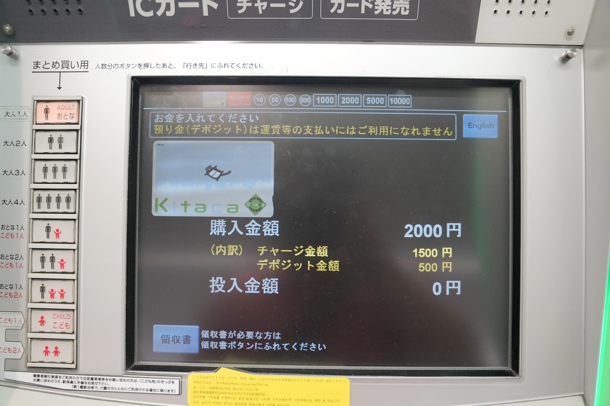投入金額後,Kitaca和找錢就會直接退出非常簡單