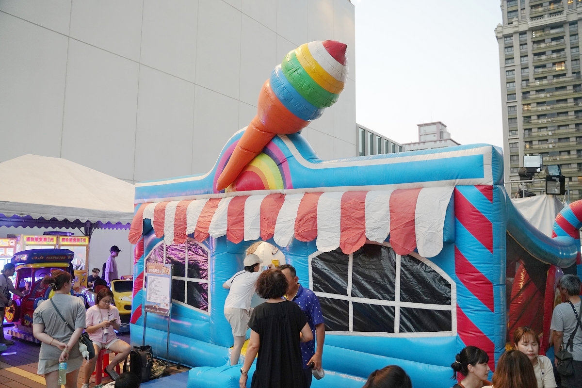買好票後,工作人員就會在手上戴上手環就可以進氣墊區開始玩樂,第一站就是冰淇淋樂園氣墊區