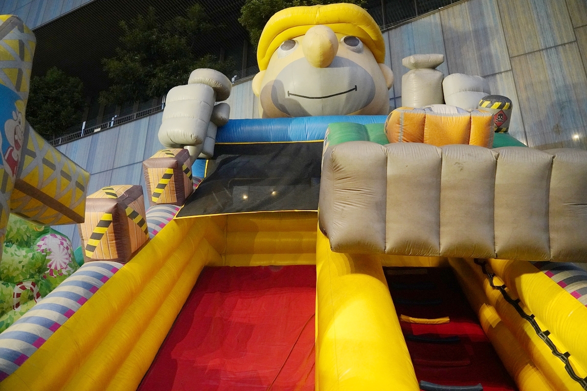 建築師樂園大滑梯區內是一座超大氣墊滑梯,小朋友要手腳並用爬上去再滑下來
