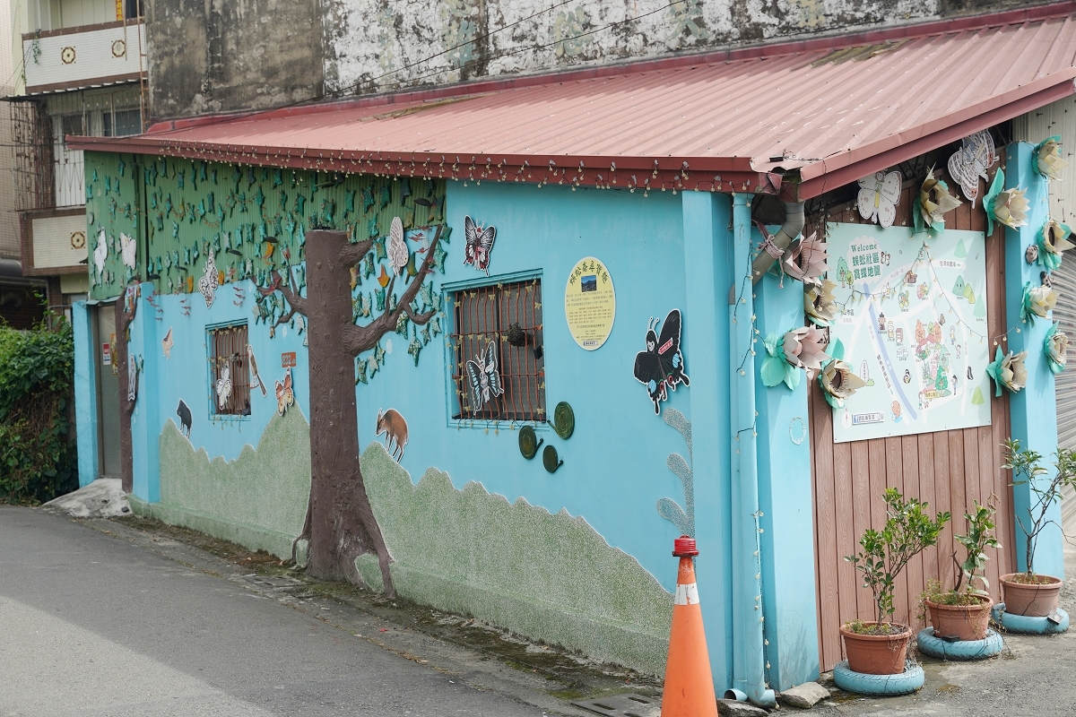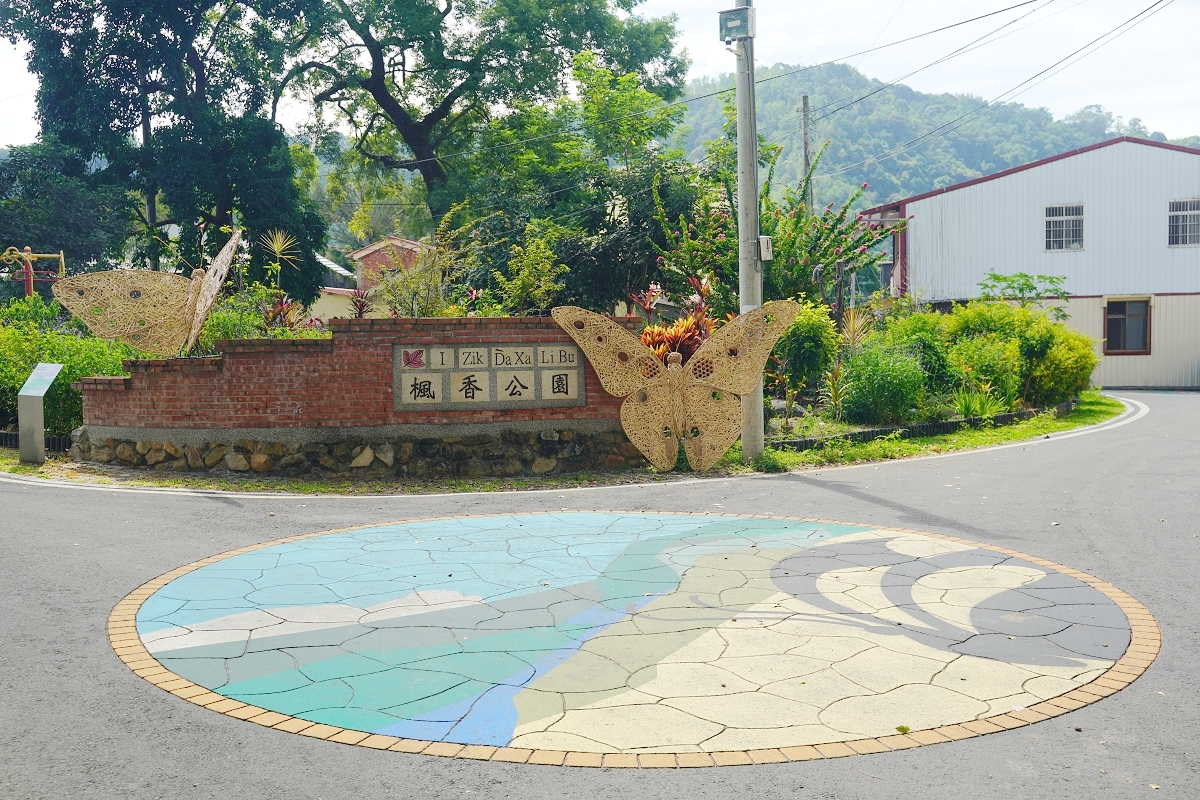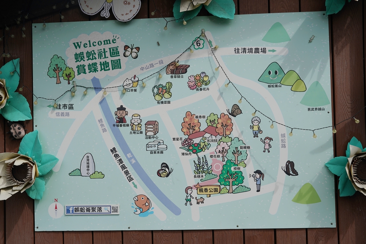 楓香公園所處的南投埔里蜈蚣社區內到處都看得到蝴蝶元素裝飾