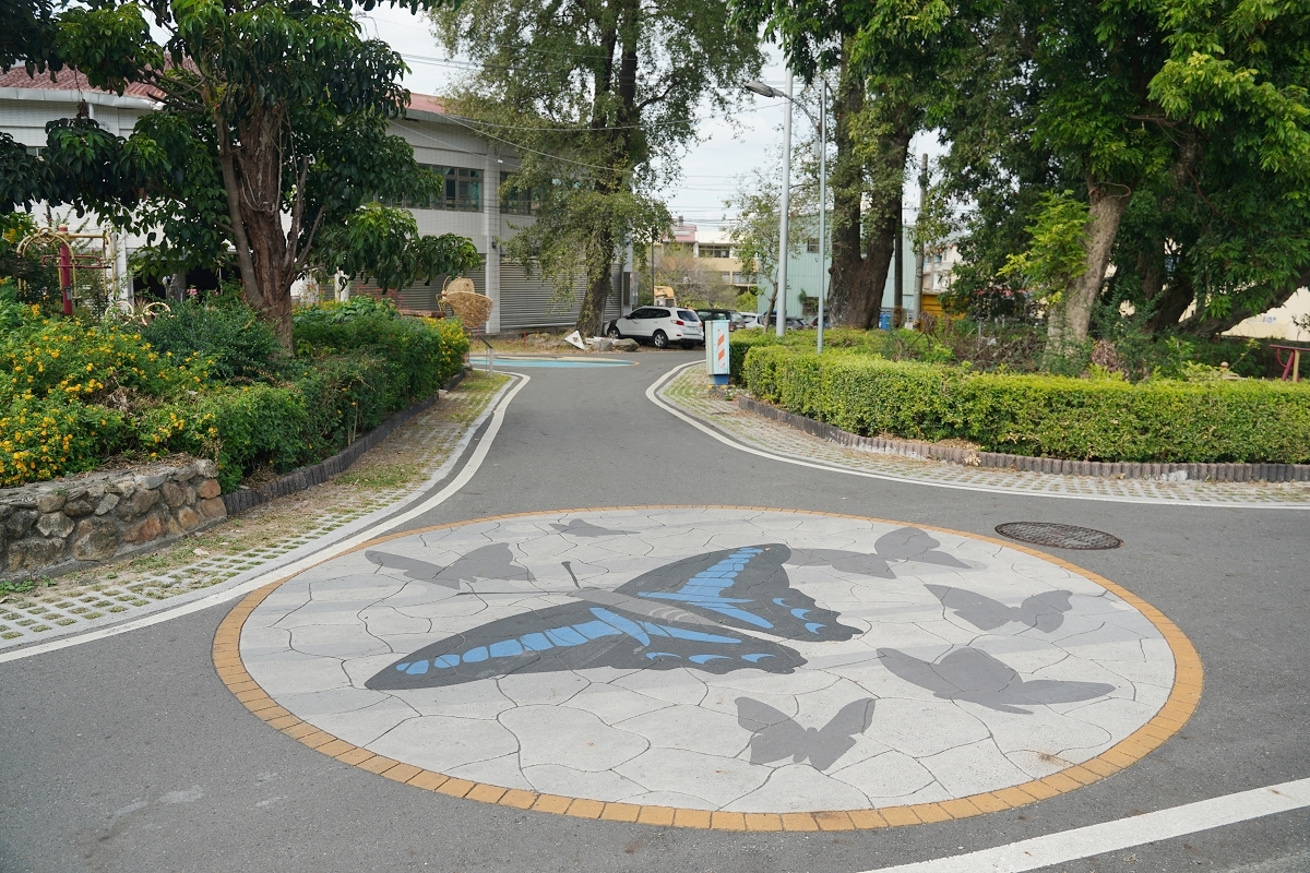 楓香公園周邊地面上都有蝴蝶元素彩繪
