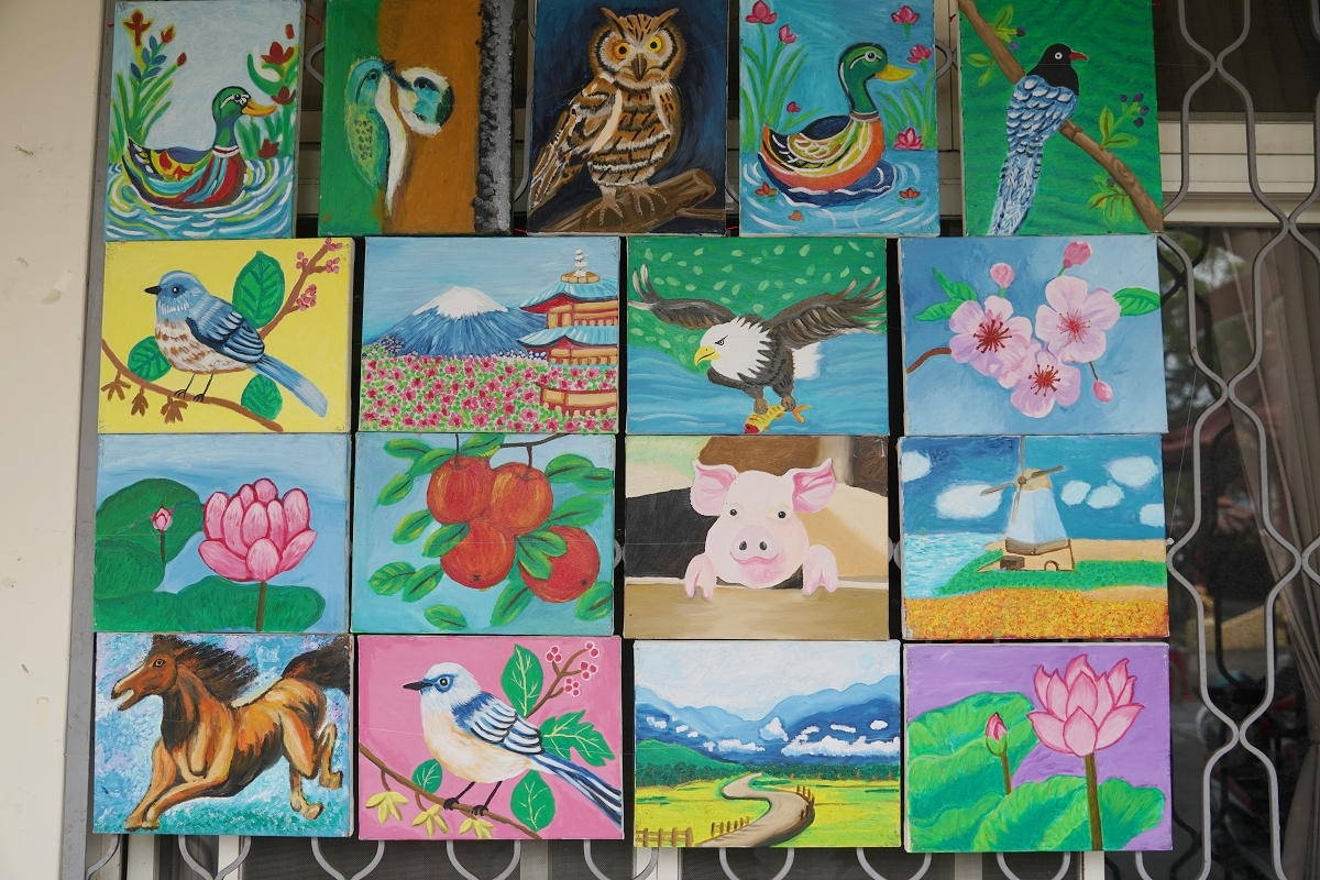 蜈蚣崙巷弄長照站內展示了許多社區內長輩們的作品