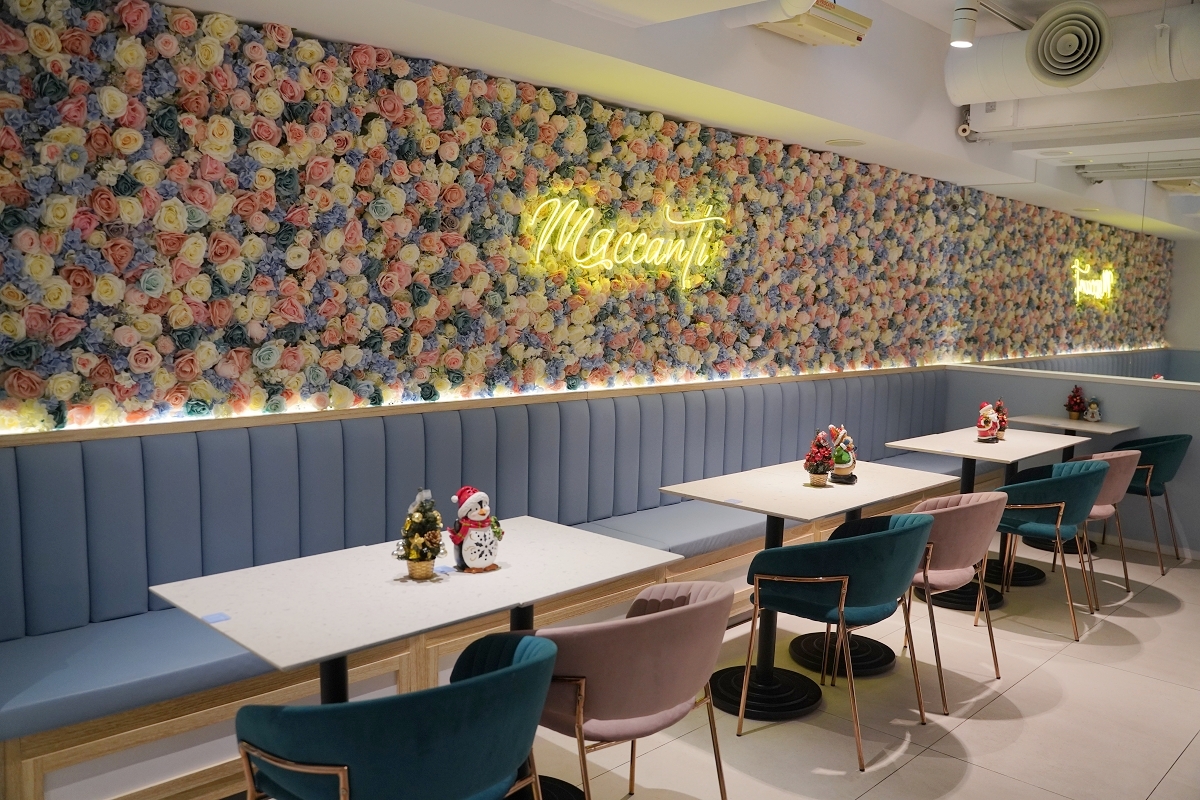 來到Maccanti 馬卡諦義大利冰淇淋桃園旗艦店的二樓,一整面的花牆造景絕對是店內最美的用餐區