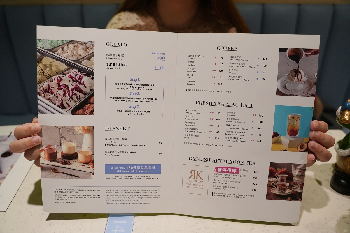 店內餐點以冰淇淋、甜點和飲品為主,冰淇淋單球90元、迷你杯140元,飲品有各種咖啡與茶飲可供選擇
