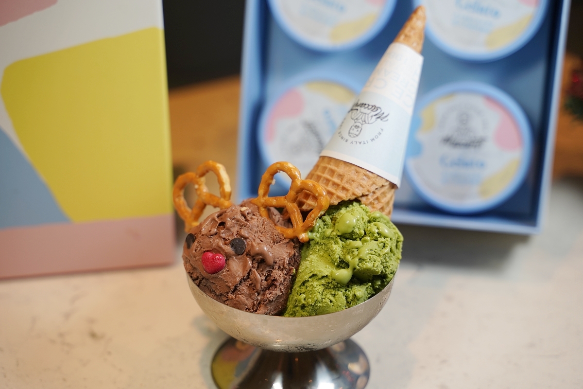固定口味 12 種:西西里開心果、牛奶、香草、優格、提拉米蘇、自釀蘭姆葡萄、檸檬、百香果、薄荷巧克力、金桔、 脆皮巧克力牛奶、奶黃