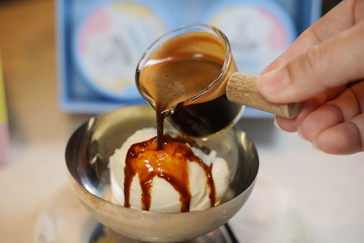 阿法奇朵又叫做淹沒於咖啡(affogato al caffè),是一款以咖啡為基底的義大利甜點,一杯阿法奇朵包含意式濃縮咖啡和一球冰淇淋,吃的時候可以先單純品嘗冰淇淋的美味,然後再把意式濃縮咖啡倒進冰淇淋杯裡,每一口都有咖啡的濃郁與冰淇淋的香甜,當作飯後甜點真的很讚