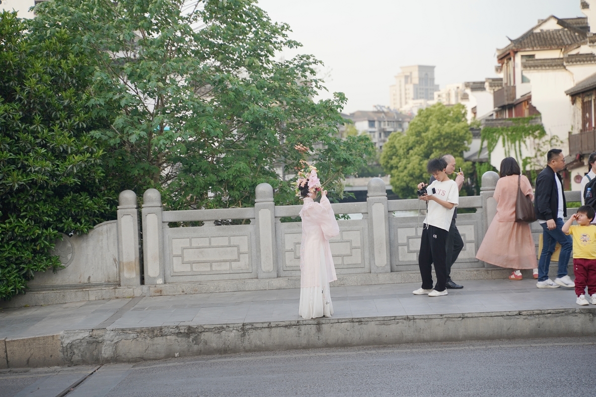 在南京夫子廟景區裡到處都可以看到換上漢服體驗的遊客