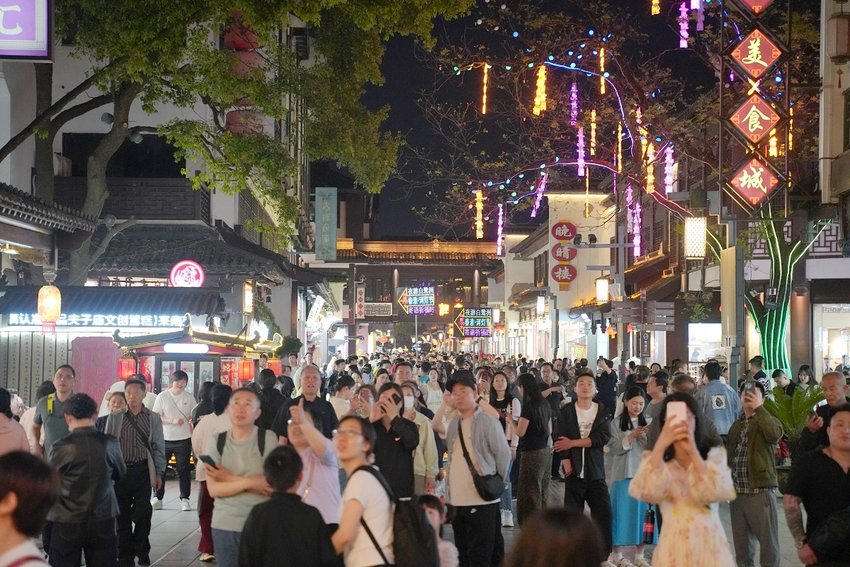 一到晚上南京夫子廟景區就會換上完全不同的風景